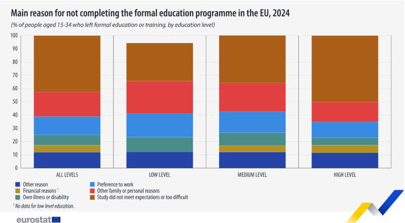 Datele Eurostat arată că motivele abandonului variază și în funcție de nivelul de educație.