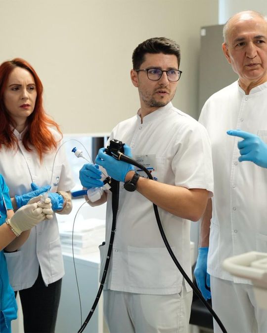Un punct de interes al evenimentului l-a reprezentat sesiunea hands-on de endoscopie bariatrică, organizată în a doua zi a masterclass-ului, într-un format practic intensiv, cu număr limitat de participanţi. În cadrul acestui modul, medici tineri au avut oportunitatea de a exersa direct procedurile, sub îndrumarea specialiştilor, într-un cadru controlat de simulare, utilizând modele biologice. Formatul, rar întâlnit în România, a oferit participanţilor o experienţă de învăţare profund aplicată şi apropiată de realitatea din sala de intervenţii.