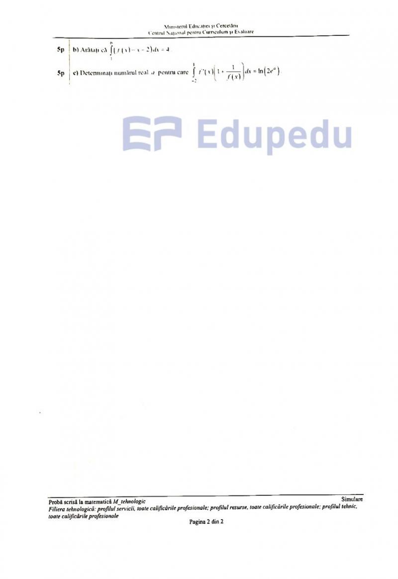 La subiectul al treilea, accentul a căzut pe analiza matematică. Aici, elevii au avut de lucrat cu derivate, asimptote și integrale, cu cerinţe specifice.